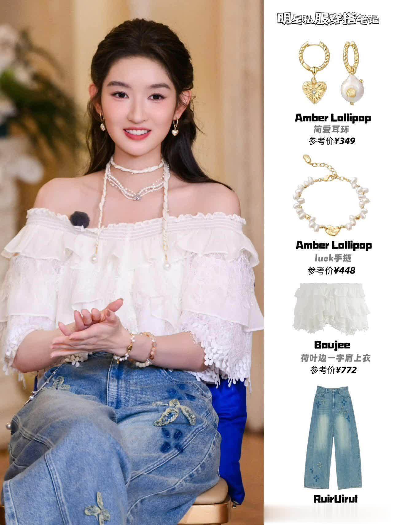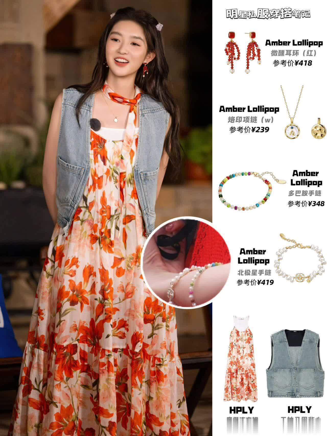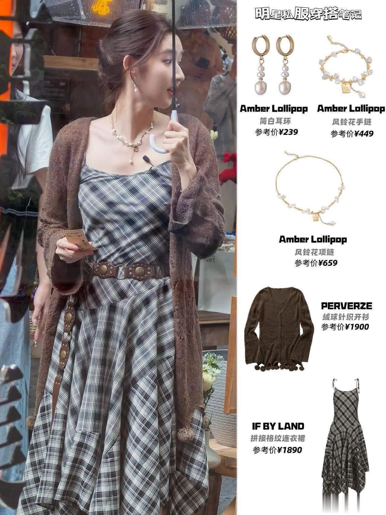 关键是这些配饰太绝了!左边的珍珠耳环和项链,右边的棕色小包,都给整体造型加分不少。而且品牌选的也很用心,Amber Lollipop的耳环和项链,设计感满满,戴出去不容易撞款;SARAWONG的葫芦包和刺绣半裙,中式元素用得特别高级,一点不土气;Roger Vivier的高跟鞋,鞋型优雅,走路还稳,通勤穿也合适。