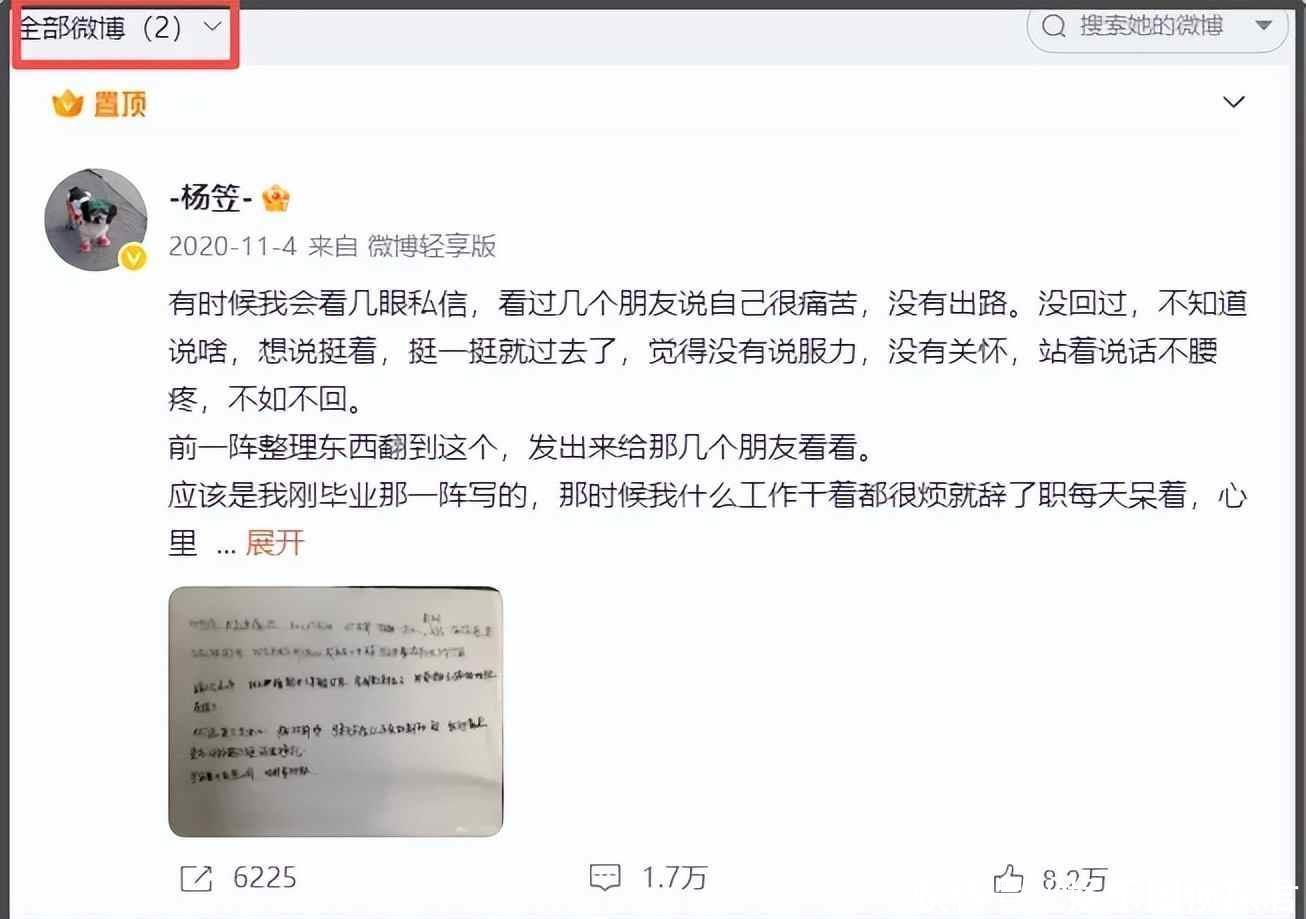 题阅读之前,麻烦用你发财的小手点点“爱心”,创作不易,感谢大家的支持!每日更新更多优质内容。杨笠最近把几个社交平台上的内容全都清空了,短视频账号里原本有32万粉丝的主页变得空荡荡,一条视频也没留下,但合作入口还在,说明杨笠没打算彻底退出网络,微博上只留下两条内容,一条是2020年发布的,讲自己找工作碰壁的事,说挺一挺就过去了,那时候正是杨笠因为提到“普信男”而火起来的时候,另一条内容已经看不清了,反正就是留了个空壳子。